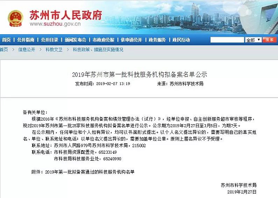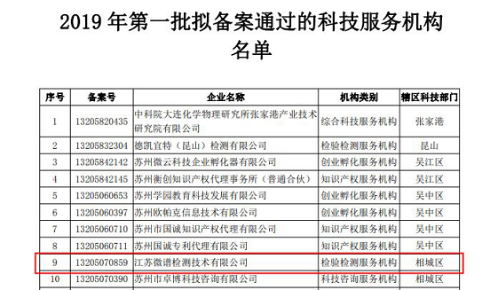 2019年2月27日下午苏州市科学技术局发布了《2019年第一批拟备案通过的科技服务机构名单》。江苏检测技术有限公司入选在内,成为苏州市首批25家科技服务备案机构之一。