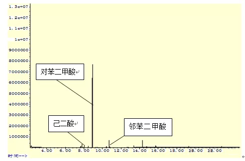已知合成单体及比例来合成饱和聚酯树脂标样,并对标样进行GC-MS、MS、1H-NMR和13C-NMR等测试,确定每种单体的GC-MS的特征出峰和NMR化学位移,探索较为准确的饱和树脂合成单体的解析方法。